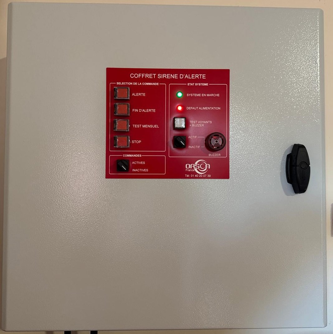 Installation d’une sirène électromécanique de type Lci ainsi que d’un transmetteur téléphonique GSM pour le déclenchement à